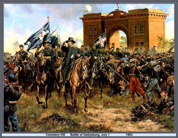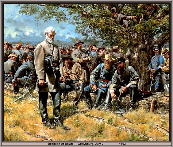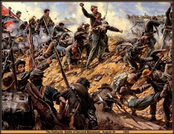 Don Troiani: after the research is done, the models have to be posed. If it is a big picture, ten, twelve, fifteen different models are used, because you need different faces, different body types, and they’ll have to be dressed in uniform and equipment and posed for the photography. The next stage will be the composition of the painting. They are all posed to match the composition sketch and then I’ll make up a detailed pencil drawing of the whole thing on the canvas, which is usually given a little coat of Shellac, so if I make a mistake in the oil painting, I can just wipe it off and the original drawing is still there underneath. I then work on the painting, using the photographs of the details as reference. I sometimes make changes, go over or remove figures, change clothes slightly…Oil is my most used medium, but I also use watercolors and gouache.