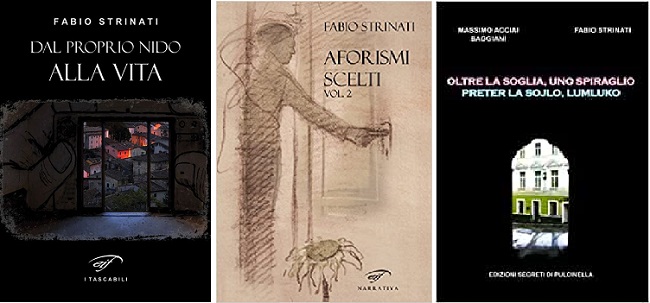 Fabio Strinati: Sinceramente non li ho mai contati, ma sapere che sono 21, un po’ mi spaventa! Sono libri di poesia, pensieri, aforismi, sperimentazioni, preghiere; ho una spiritualità molto accentuata e questo mi porta ad approfondire alcuni lati di me che sono in qualche modo nascosti là, proprio negli abissi dell’animo umano. Ogni libro scritto, realizzato e pubblicato, per me, non rappresenta altro che un punto di inizio; mi piace ragionare come se stessi immerso dentro ad un lunghissimo viaggio; una lunga e sterminata strada dove è possibile viaggiare, scrutare, adocchiare ed infine, sostare con libera pazienza; i miei libri sono come delle macchie scure nel bel mezzo di un prato verde.