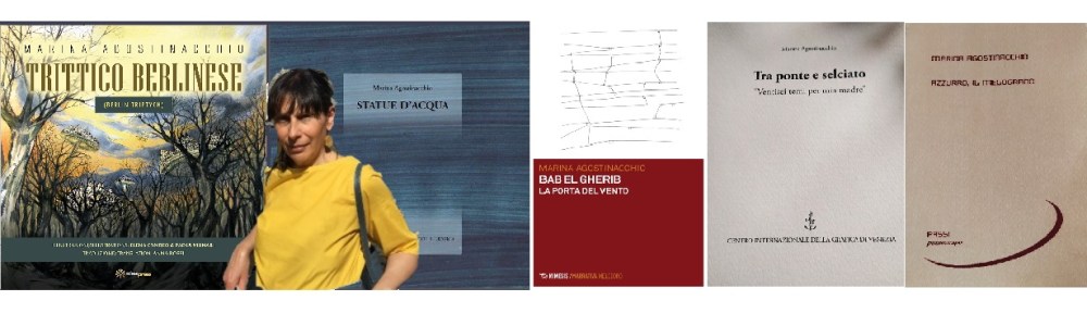 Marina Agostinacchio: Ero in una piscina dell’Hotel Plaza di Abano Terme a fare esercizi di acquagim. Improvvisamente alzo la testa e vedo in una vasca sovrastante dell’albergo dei corpi che si muovevano, fluttuavano chiamandomi a pormi degli interrogativi. Tra le plurime domande, scelsi di oscillare tra due: angeli o umani? Esseri viventi loro e morti noi? Nel poemetto lascio al lettore la risposta, tenendo per me il quesito non risolto.