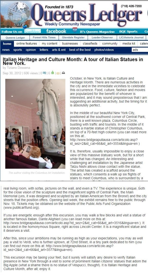 Italian Cultural Heritage Month:a tour of Italian statues of New York. Share this: Click to share on X (Opens in new window) X Click to share on Facebook (Opens in new window) Facebook Click to share on LinkedIn (Opens in new window) LinkedIn Click to share on Tumblr (Opens in new window) Tumblr Click to share on WhatsApp (Opens in new window) WhatsApp Like Loading...