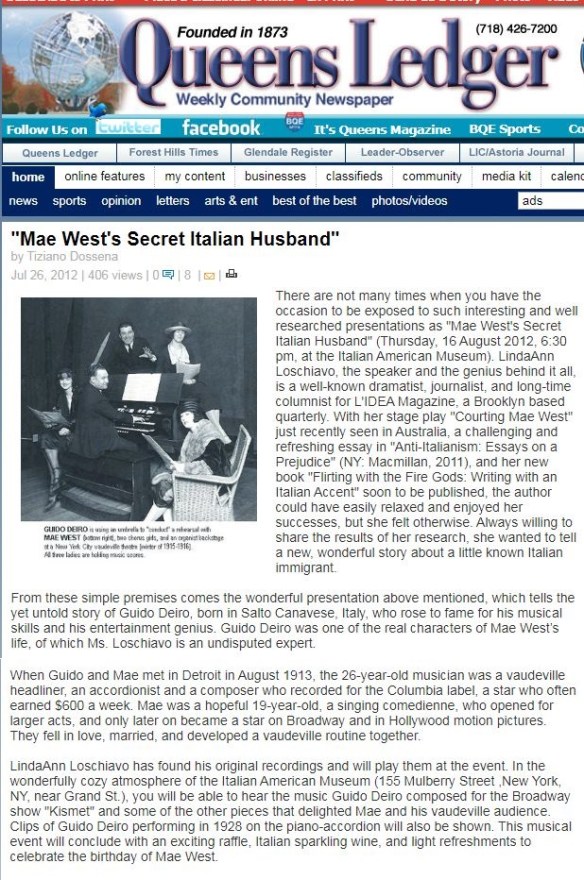 Mae West’s Secret Italian Husband Share this: Click to share on X (Opens in new window) X Click to share on Facebook (Opens in new window) Facebook Click to share on LinkedIn (Opens in new window) LinkedIn Click to share on Tumblr (Opens in new window) Tumblr Click to share on WhatsApp (Opens in new window) WhatsApp Like Loading...